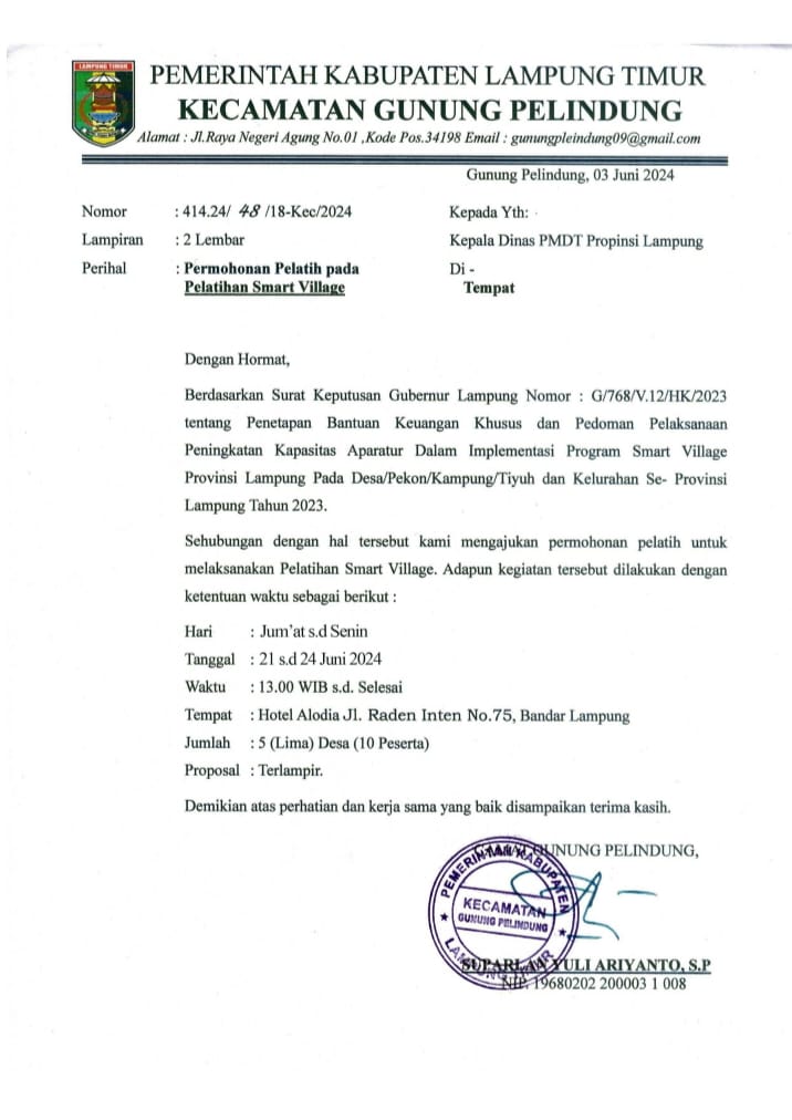Jl. Puskesmas Gg. III Desa Way Mili Kec. Gunung Pelindung Kab. Lampung Timur KodePos. 34388 Gunung Pelindung
